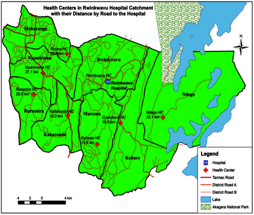 Rwinkwavu District Hospital is a public health Institution located at Eastern Province. Kayonza District Rwinkwavu Sector,Nkondo Cell,Kinihira Village.The hospital is accessible from the Rwanda capital Kigali by asphalt road up to Kabarondo commercial center and you turn left after a gas station in Kabarondo,from there you follow the Kabarondo- Akagera National Park secondary road. The total travel time is 2h 30mins from Kigali.